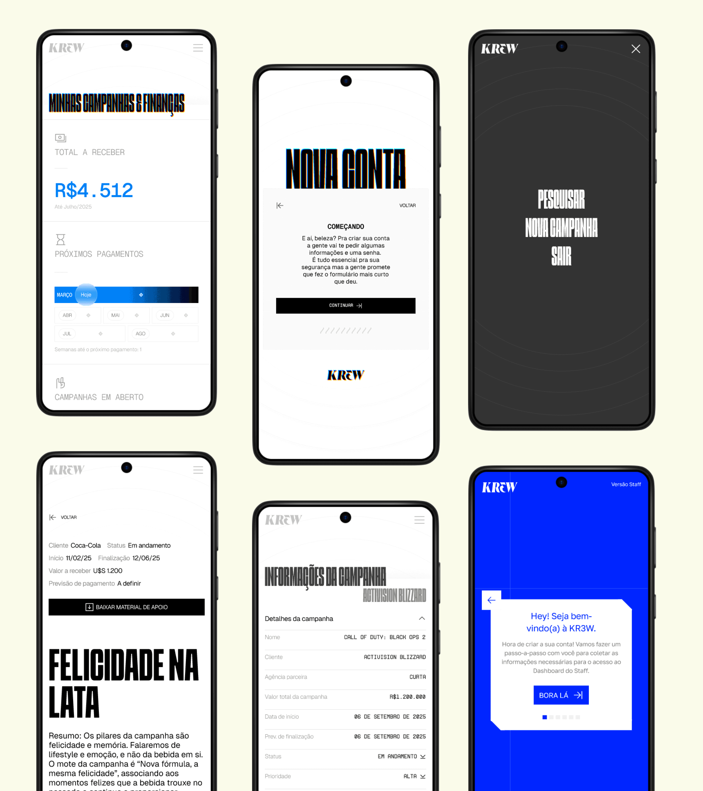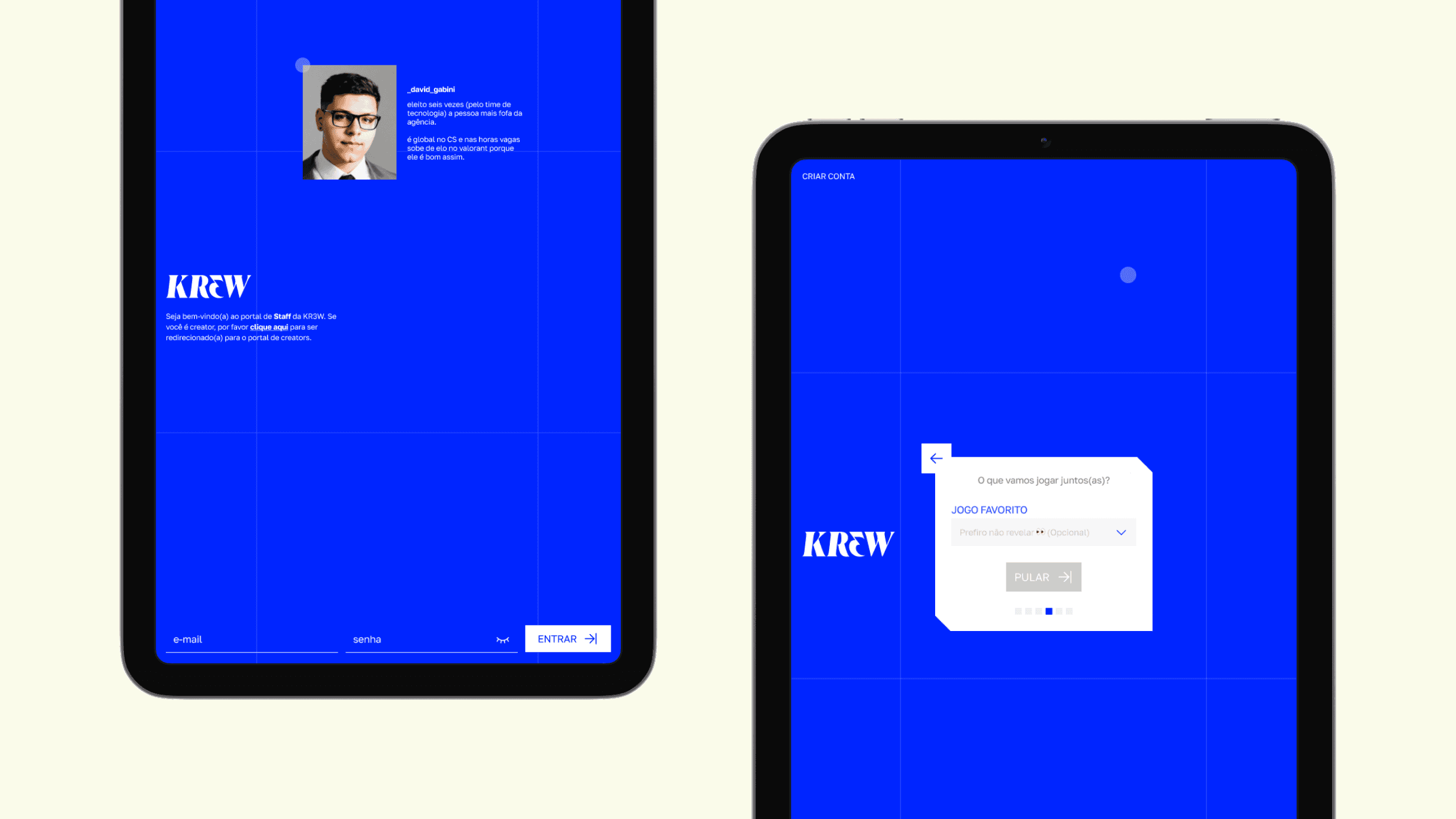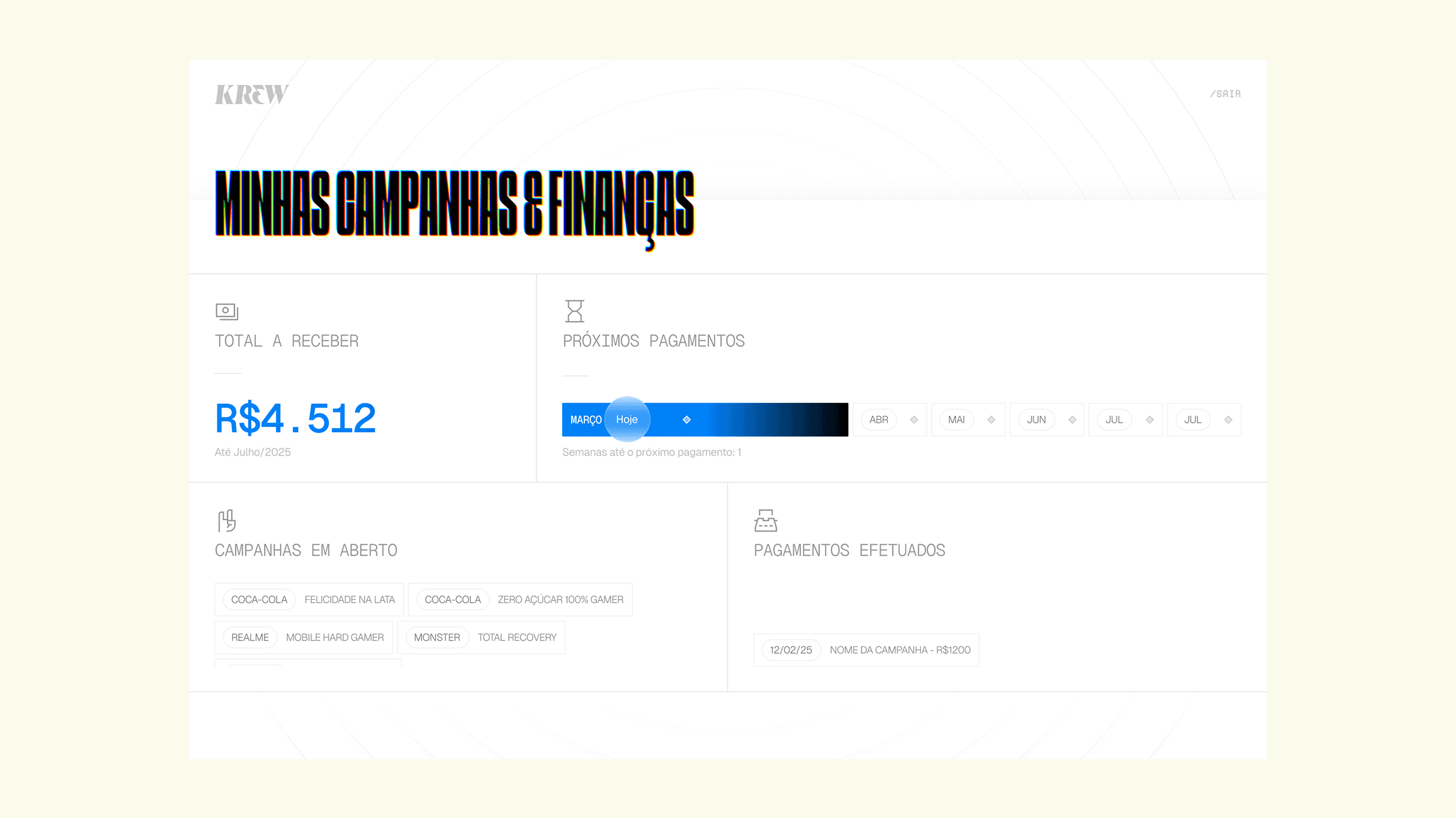 A KR3W é a maior agência de influenciadores gamers do Brasil. Nesse projeto, eu fui responsável pela gestão do produto, desenvolvimento de roadmap, design e supervisão de desenvolvedores.