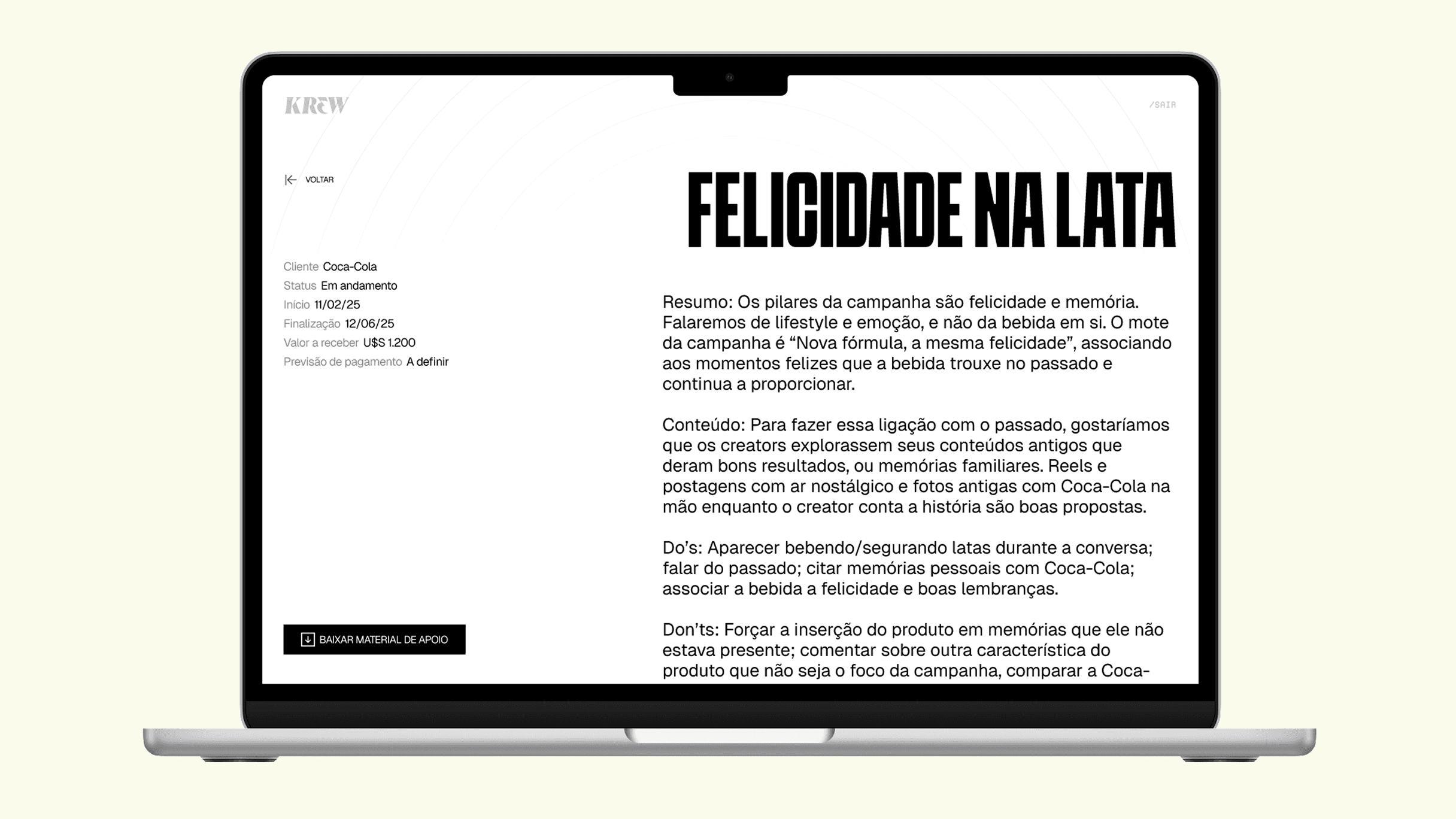 Tínhamos um problema raiz que apresentava sintomas tanto dentro quanto fora da agência. De um lado, os creators não conseguiam saber quanto tinham para receber da agência, de quais campanhas estavam participando e qual era o seu histórico. Por outro lado, o time interno precisava buscar essas mesmas informações em fontes descentralizadas e atualizar os influenciadores manualmente. Com isso, muito trabalho era produzido e documentado em setores, dificultando uma visão geral das entregas.